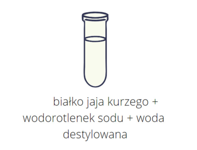 3. W obu probówkach, po dodaniu wody destylowanej i zamieszaniu, powinno nastąpić rozpuszczenie powstałego osadu lub białka w roztworze.