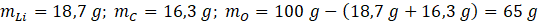 W tym zadaniu ustal wzór empiryczny związku składającego się z 18,7% litu, 16,3% węgla oraz reszty tlenu. Znając masę molową tego związku, równą 88 g/mol, ustal wzór sumaryczny tego związku.