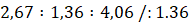 Podziel stosunek przez 1,36, by otrzymać stosunek wyrażony liczbami całkowitymi: