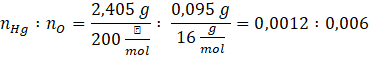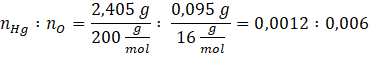 Następnie oblicz liczbę moli rtęci i tlenu oraz ich stosunek: