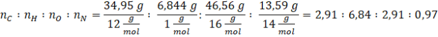 W tym zadaniu ustal wzory empiryczny i sumaryczny seryny, znając masę molową M = 100 g/mol oraz skład procentowy związku: 34,95% C, 6,844% H, 46,56% O, 13,59% N.
