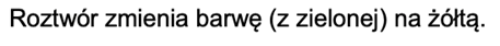 Zapisz, jaka zmiana świadczy o zajściu reakcji w tej probówce, uwzględniając barwę zawartości probówki po reakcji.