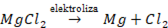 2. Elektroliza stopionego MgCl2 w wysokiej temperaturze (ok. 700 oC) -> magnez metaliczny i chlor gazowy: