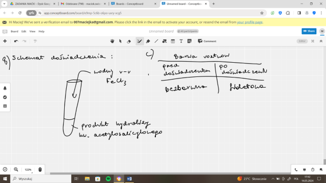 W tym zadaniu musisz uzupełnić tabelę wpisując barwę roztworu przed wykonaniem doświadczenia i po nim.