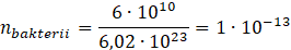 1 mol zawiera bakterii, a więc liczba moli wyniesie: