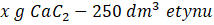 W tym zadaniu oblicz masę karbidu (zawierającego 15% zanieczyszczeń) potrzebnego do uzyskania 250 dm3etynu w warunkach normalnych.