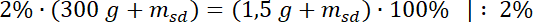 Odp.: Do 300 g roztworu 0,5-procentowego dodano 4,59 g jodku potasu i dzięki temu otrzymano roztwór 2-procentowy.