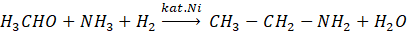 W tym zadaniu oblicz objętość amoniaku, w warunkach normalnych, która przereaguje ze stechiometrycznymi ilościami pozostałych substratów, gdy po reakcji otrzymamy 451 g etyloaminy.