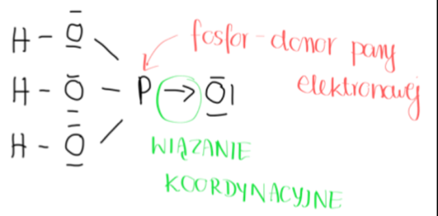 Zaznacz, które wiązanie w cząsteczce tego kwasu ma charakter koordynacyjny, a następnie określ, który pierwiastek dostarcza parę elektronową do utworzenia tego wiązania.