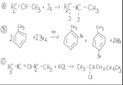 Wskaż reakcje, które prowadzą do powstania monohalogenopochodnych węglowodorów.