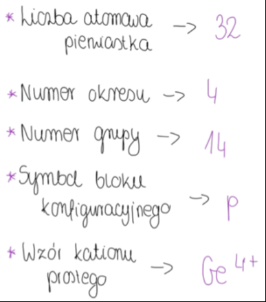 Przepisz tabelę do zeszytu i uzupełnij ją danymi dotyczącymi pierwiastka X. Następnie podaj wzór jego kationu prostego o najwyższym możliwym ładunku.
