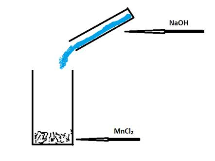 Wykonaj rysunek przedstawiający schemat przebiegu doświadczenia otrzymywania Mn(OH)2.