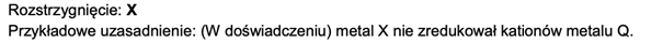 Na podstawie braku zmian w układzie rozstrzygnij, czy wyższy potencjał redukcji ma metal X czy Q, i uzasadnij swój wybór.