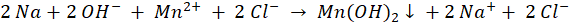 Równanie cząsteczkowe jest zwykłym równaniem chemicznym, w którego zapisie używamy wzorów sumarycznych związków. Równanie jonowe jest zapisem, w którym użyjemy jonów „rozbijając” związki chemiczne rozpuszczalne w wodzie (sprawdź tabele rozpuszczalności). Pamiętajmy, że substancji w formie stałej (wodorotlenek manganu) nie rozbijamy na jony. Zapis jonowy skrócony powstaje po skreśleniu z zapisu jonowego elementów występujących zarówno po lewej, jak i prawej stronie równania.