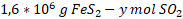 W tym zadaniu, na podstawie równania reakcji i podanych warunków, musisz określić, jaką objętość tlenku siarki(IV) otrzymasz przy spaleniu 2 ton pirytu.