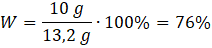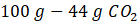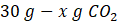 Wiadomo, że z 1 mola CaCO3 (100 g) można otrzymać 1 mol CO2 (44 g), więc z wydajnością 100% z 30 g węglanu powinniśmy otrzymać CO2: