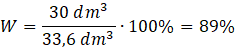 Wiadomo, że z 2 moli glinu (54 g) można otrzymać 3 mole wodoru (67,2 dm3), więc z wydajnością 100% z 27 g glinu powinniśmy otrzymać wodoru: