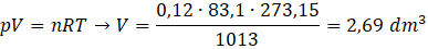 Z równania Clapeyrona wyznacz objętość tego gazu: