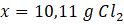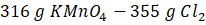 Stechiometrycznie z 2 moli KMnO4 powstaje 5 moli Cl2, co w gramach daje: