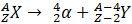 Przemiana α to wypromieniowanie cząstki alfa ( ), czyli pomniejszenie o 4 liczby masowej i o 2 liczby atomowej: