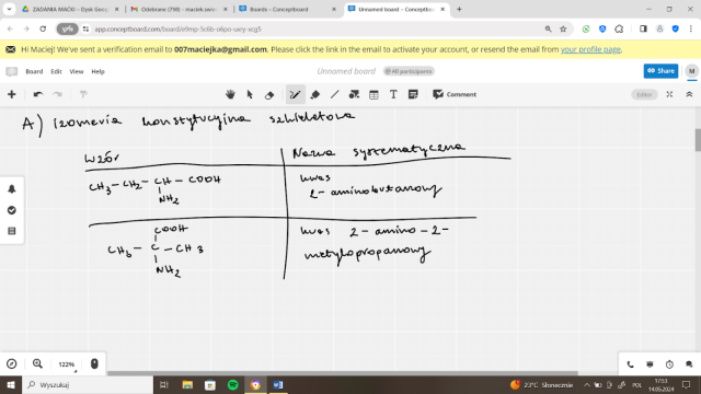 W tym zadaniu musisz narysować wzory półstrukturalne oraz podaj nazwy systematyczne par izomerów aminokwasów o wzorze sumarycznym C4 H9O2N w których występuje izomeria konstytucyjna szkieletowa.
