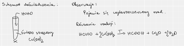 W tym zadaniu musisz zaprojektować doświadczenie pozwalające zidentyfikować metanal w formalinie. Przedstaw schemat doświadczenia i oczekiwane obserwacje. Napisz równanie zachodzącej reakcji chemicznej.