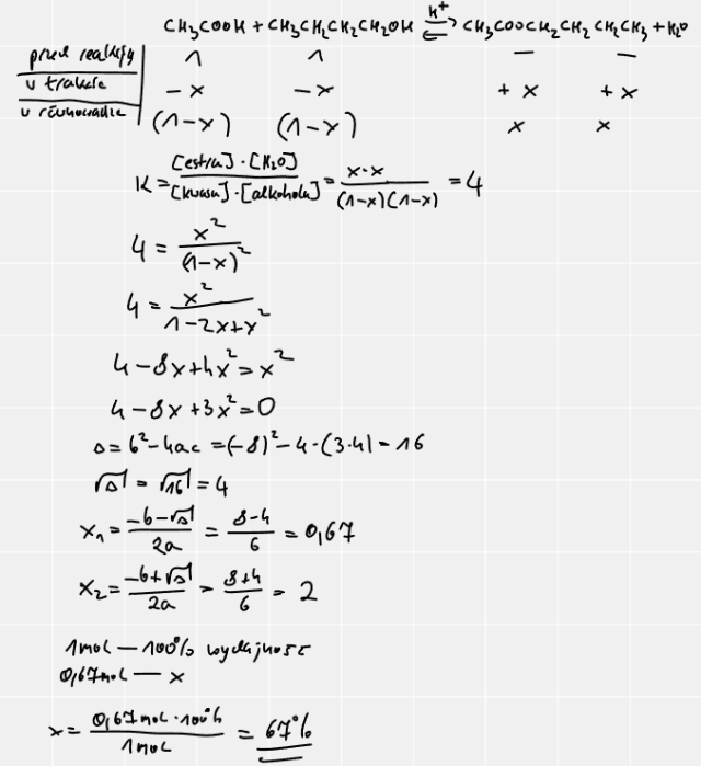 Komentarz: X2 odrzucamy, ponieważ wtedy stężenie równowagowe substratów byłoby mniejsze od 0, a to fizycznie niemożliwe.