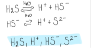 Zapisz wzory wszystkich drobin obecnych w roztworze kwasu siarkowodorowego.