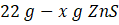 Jeśli z 1 mola cynku (65,5 g) stechiometrycznie można dostać 1 mol ZnS (97,5 g) to z 22 g cynku można dostać: