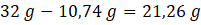 W zadaniu użyto 32 g siarki, a zużyło się jej stechiometrycznie do cynku 10,74 g, więc: