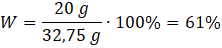 W zadaniu jest powiedziane, że otrzymano 20 g siarczku, a w poprzednim punkcie policzyliśmy, że stechiometrycznie przy wydajności 100% powstanie 32,75 g siarczku: