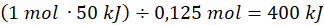 0,125 mol → 50 kJ