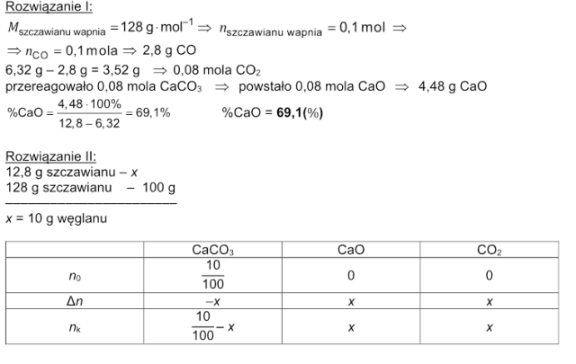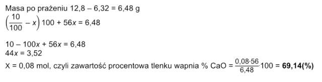 Oblicz zawartość procentową tlenku wapnia w mieszaninie otrzymanej po przerwaniu prażenia.