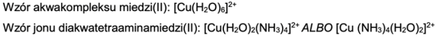 Zapisz wzory opisanych jonów kompleksowych: akwakompleksu miedzi(II) oraz jonu diakwatetraaminamiedzi(II).