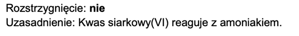 Ustal, czy można usunąć parę wodną z gazowego amoniaku, jeżeli przepuści się go przez stężony H2SO4, a swoje stanowisko uzasadnij.