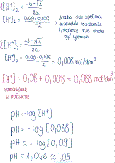 Wyznacz pH powstałej mieszaniny i podaj wynik z dokładnością do dwóch miejsc po przecinku.