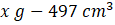 Potrzeba 1 mol CaS (czyli 72 g), żeby otrzymać 4 mole SO2 (czyli 4 ∙ 22,4 dm3), więc potrzeba x g, żeby dostać 497 cm3 SO2 (wydajność 80%). Jednostkę dm3 zamień na cm3, pamiętając o tym, że 1 dm3 = 1000 cm3.