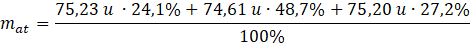 W tym zadaniu oblicz średnią masę atomową pierwiastka, składającego się z trzech izotopów o podanych masach atomowych i zawartościach procentowych.