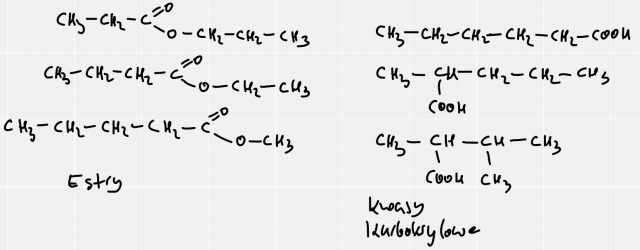 W tym zadaniu musisz napisać po trzy wzory półstrukturalne izomerów octanu n-butylu, należących do szeregu homologicznego estrów i do szeregu homologicznego kwasów karboksylowych.