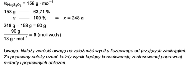 Oblicz liczbę moli wody, jaka przypada na 1 mol Na2S2O3 w soli o wzorze Na2S2O3 ∙ 𝒙H2O.