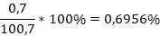 100 g wody + 0,7 g Cl₂ = 100,7 g roztworu