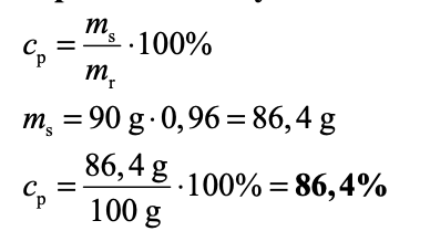 Wyznacz procentowe stężenie masowe etanolu w roztworze jodyny, przyjmując, że etanol nie uległ reakcji utlenienia. Otrzymany wynik zaokrąglij do jednego miejsca po przecinku.