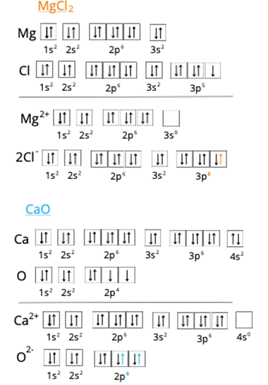 W pierwszym kroku zwróć uwagę na różnicę w elektroujemności pierwiastków chemicznych. Informacje o elektroujemności znajdziesz w układzie okresowym. Różnica >1,7 wskazuje na wiązanie jonowe. Właśnie takie wiązania tworzą się w podanych przykładach. Atomy wapnia i magnezu, by uzyskać trwałą konfigurację, muszą pozbyć się dwóch elektronów. Przekazują je atomom tlenu i chloru. W ten sposób wszystkie atomy w solach zyskują konfigurację gazu szlachetnego, która jest dla nich najkorzystniejsza energetycznie.