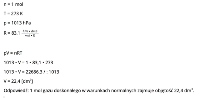 Jaka jest objętość 1 mola gazu doskonałego w warunkach normalnych?