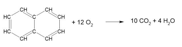 W tym zadaniu napisz równanie reakcji spalania całkowitego i niecałkowitego naftalenu.