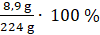 Zaczynamy od obliczenia masy soli bezwodnej oraz soli uwodnionej. Od masy soli uwodnionej odejmujemy masę soli bezwodnej, tym samym otrzymujemy masę wody w związku. Układamy proporcję, chcąc znaleźć, ile wody znajduje się w 24 g sody krystalicznej. Otrzymujemy wynik, który należy odjąć od 24 g. Otrzymujemy masę soli bezwodnej. Masa całego roztworu to masa wody dodać masę soli krystalicznej. Na koniec obliczamy stężenie procentowe, masę substancji dzielimy przez masę roztworu, mnożąc razy 100%.