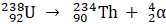 W wyniku przemiany α uran wypromieniowuje cząstkę, o którą to trzeba pomniejszyć liczbę masową i liczbę atomową. Powstaje nowy pierwiastek o nowej liczbie masowej i atomowej ( ).