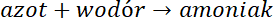 Napisz reakcję syntezy, w której połączeniu ulegają azot i wodór.