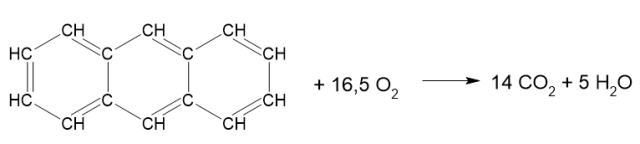 W tym zadaniu napisz równanie reakcji spalania całkowitego i niecałkowitego antracenu.