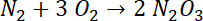 Nie zgadza się tlen. Po lewej stronie znajdują się dwa atomy, a po prawej trzy. Żeby wyrównać ich liczbę, po lewej stronie przed cząsteczką tlenu dopisujemy współczynnik 3, a po prawej przed cząsteczką tlenku azotu, współczynnik 2.